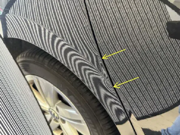 sichtbare Schäden an Karosserie, Glas und Lack